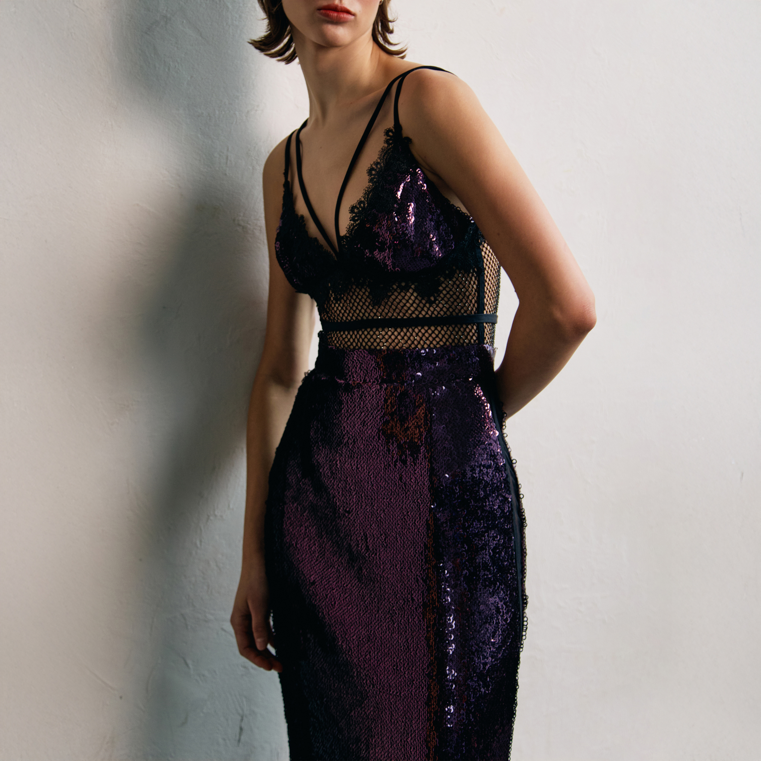 Materiał: Cekiny, siatka transparentna, koronka